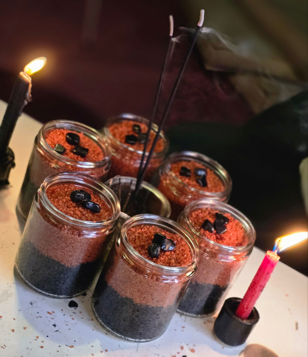 My No Backseas Bath Salts do exactly that. Made with red alaea Hawaiian sea salt for power and domination, and black lava salt for deep removal and protection. Salt purges, it pulls, pushes, and shields at the same time. As you soak, you’re using your own energy to fuel the return. The red drives it back. The black clears your field. And when it’s gone, the salt seals you in... armor your enemies can’t touch.